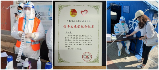 机20-3班的钟世保,在刚结束了为期两个月的冬奥志愿服务后积极投身于学校疫情防控志愿工作,他说:“作为一名新青年,从冬奥的羽绒服换成了志愿蓝小马甲,在感到光荣的同时,也感受到身上担起的责任。志愿者的工作也许微小,但它的存在能够在社会中传递正能量,让周围的人感受到温暖和关怀。”