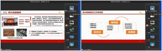 同时,学院开展了多轮全院教职工有关疫情防控“大思政课”学习。通过生动的事例、翔实的数据,大家认识到当前疫情形势的严峻性,认识到学校实施疫情防控各项要求的必要性,克服厌战情绪,消除麻痹思想、侥幸心理,自觉做好疫情防控工作。学院向全体教师提出了把抗击疫情工作中涌现的鲜活素材和生动事例融入教学过程、开展生动的课程思政的任务。同时学院及时传达学校疫情防控工作有关会议精神,就统筹做好近期疫情防控工作和线上教学、研究生指导、毕业工作、就业工作、大学生关心关爱等工作进行了细致的安排。